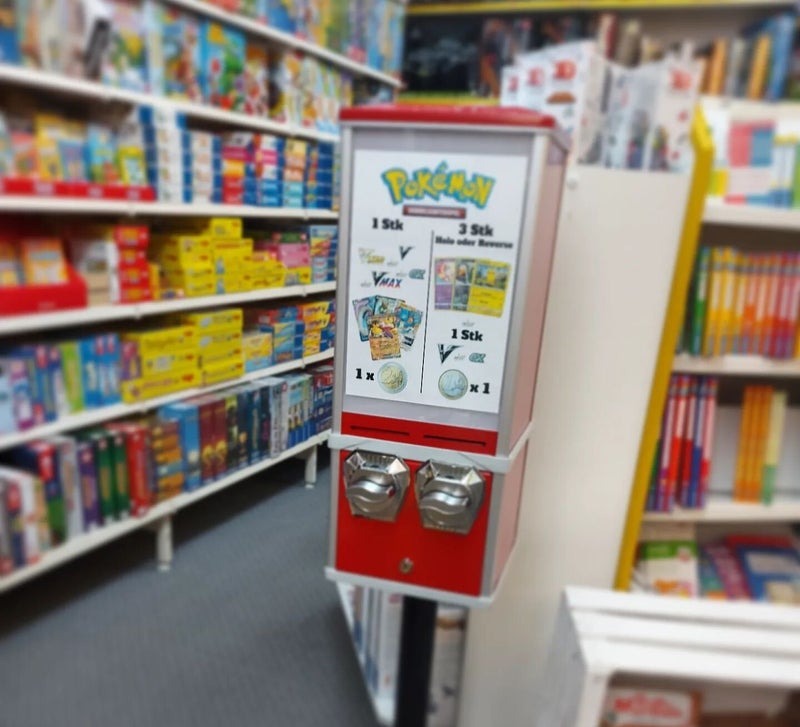 Für den Anfang durchforstete ich sämtliche gängige Plattformen, an denen Pokémon Karten angeboten werden und kaufte alles was preislich annehmbar war zusammen :-)! Karten hatte ich also erst einmal. Danach überlegte ich mir, wo ich denn bezüglich eines Stellplatztes anfragen könnte und entschied mich dafür bei meinem ansässigen Spielwarengeschäft anzufragen. Ich ging also in dieses Geschäft, fragte nach dem Geschäftsführer und erklärte ihm meine Idee. Ihm gefiel mein Vorhaben direkt und er meinte, ich könne gerne einen Automaten bringen. Ich konnte mein Glück nicht fassen! Somit wäre alles für den Start unter Dach und Fach!