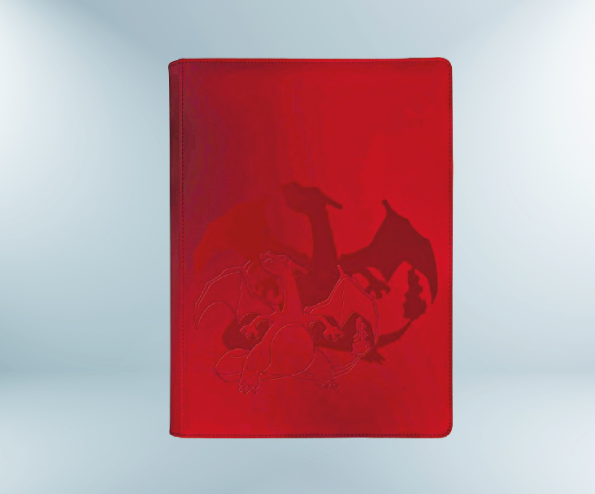 Einer der premium Ultra- Pro Binder, hochwertig verarbeitet mit Glurak Prägung auf der Vorderseite und Pokeball- Prägung auf der Rückseite. Das Matt/Hochlanz Muster auf der Innenseite des Einbandes macht diesen 9- Pocket Premium PRO- Binder zu einem absoluten Hingucker der Seinesgleichen sucht!